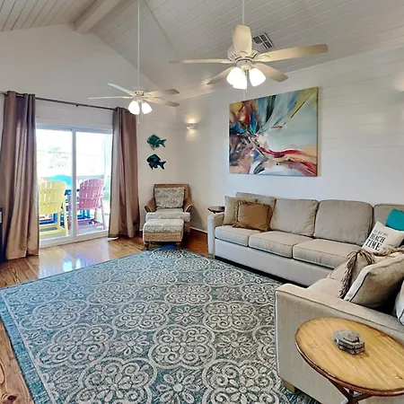 Welcome to the Reel Nauti Villa, a stunning coastal retreat nestled in Port Aransas, where comfort meets the spirit of adventure. Perfectly situated just steps from the shimmering waters of the Gulf of Mexico, this villa embodies both relaxation and the thrill of marine exploration. Guests can relish the sound of waves while soaking in the serene atmosphere, making it an idyllic choice for beach enthusiasts.